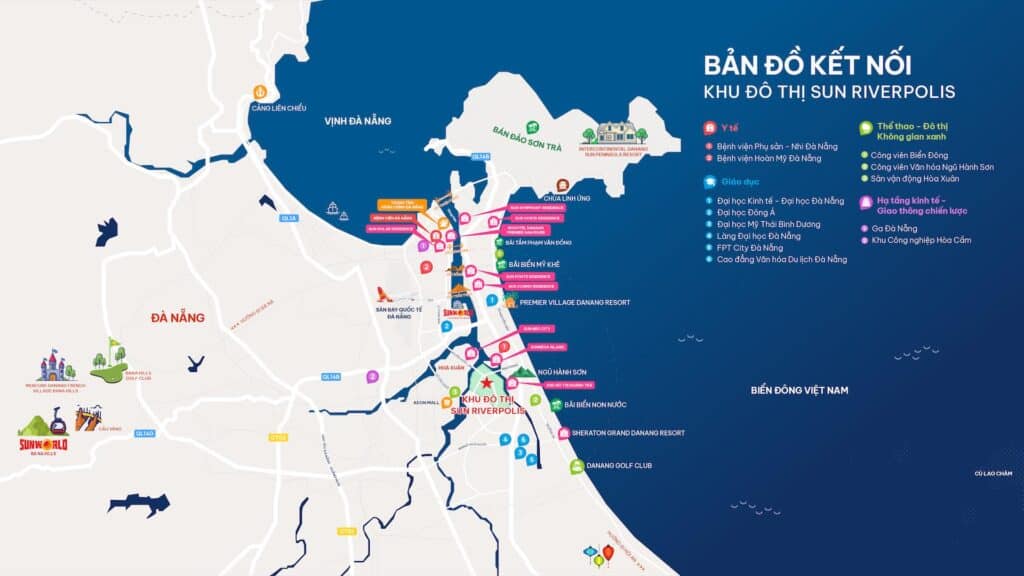 Không chỉ thừa hưởng chiều sâu văn hóa, tọa độ này còn mở ra một mạng lưới kết nối đa trải nghiệm hiếm có. Trong bán kính vài km, cư dân có thể chạm vào làn nước trong xanh của biển Non Nước, bãi tắm Sơn Thủy, khám phá danh thắng Ngũ Hành Sơn hay chiêm ngưỡng “dòng sông ánh sáng” Hàn Giang cùng những cây cầu biểu tượng như cầu Trần Thị Lý, cầu Rồng…