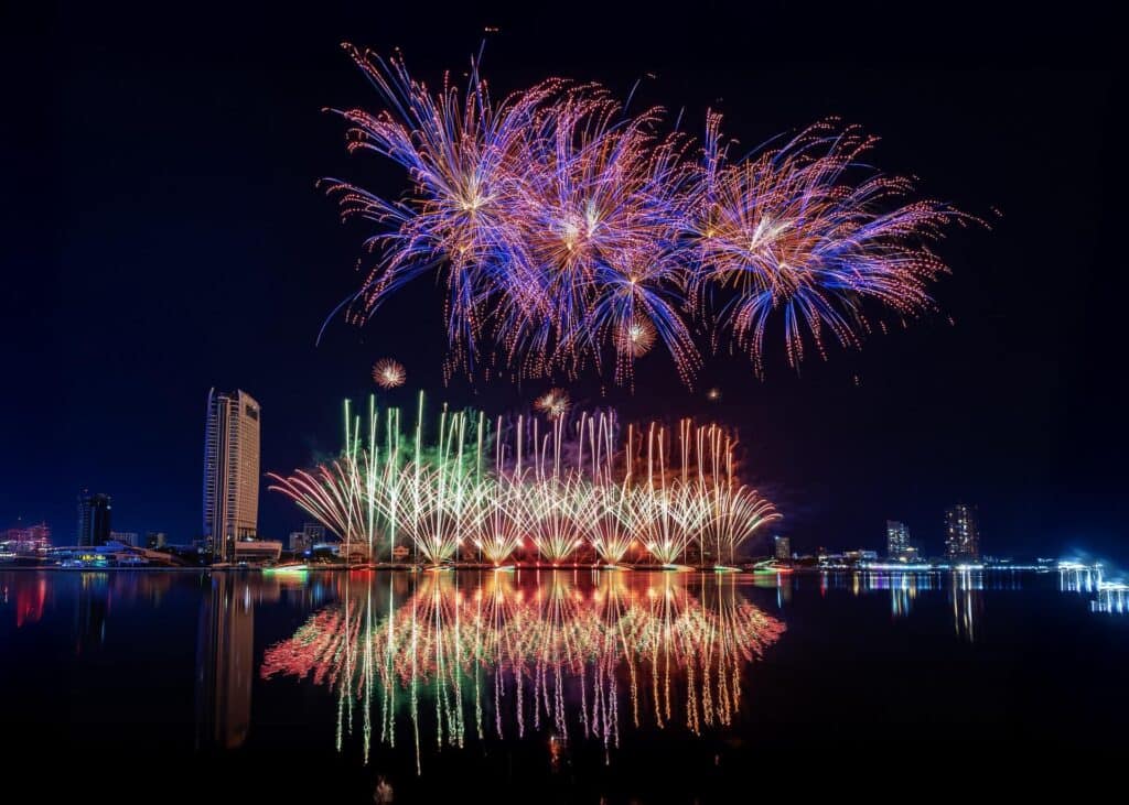 Lễ hội Pháo hoa Quốc tế Đà Nẵng (DIFF) điểm tô sắc màu rực rỡ cho sông Hàn. Ảnh: Ánh Dương.